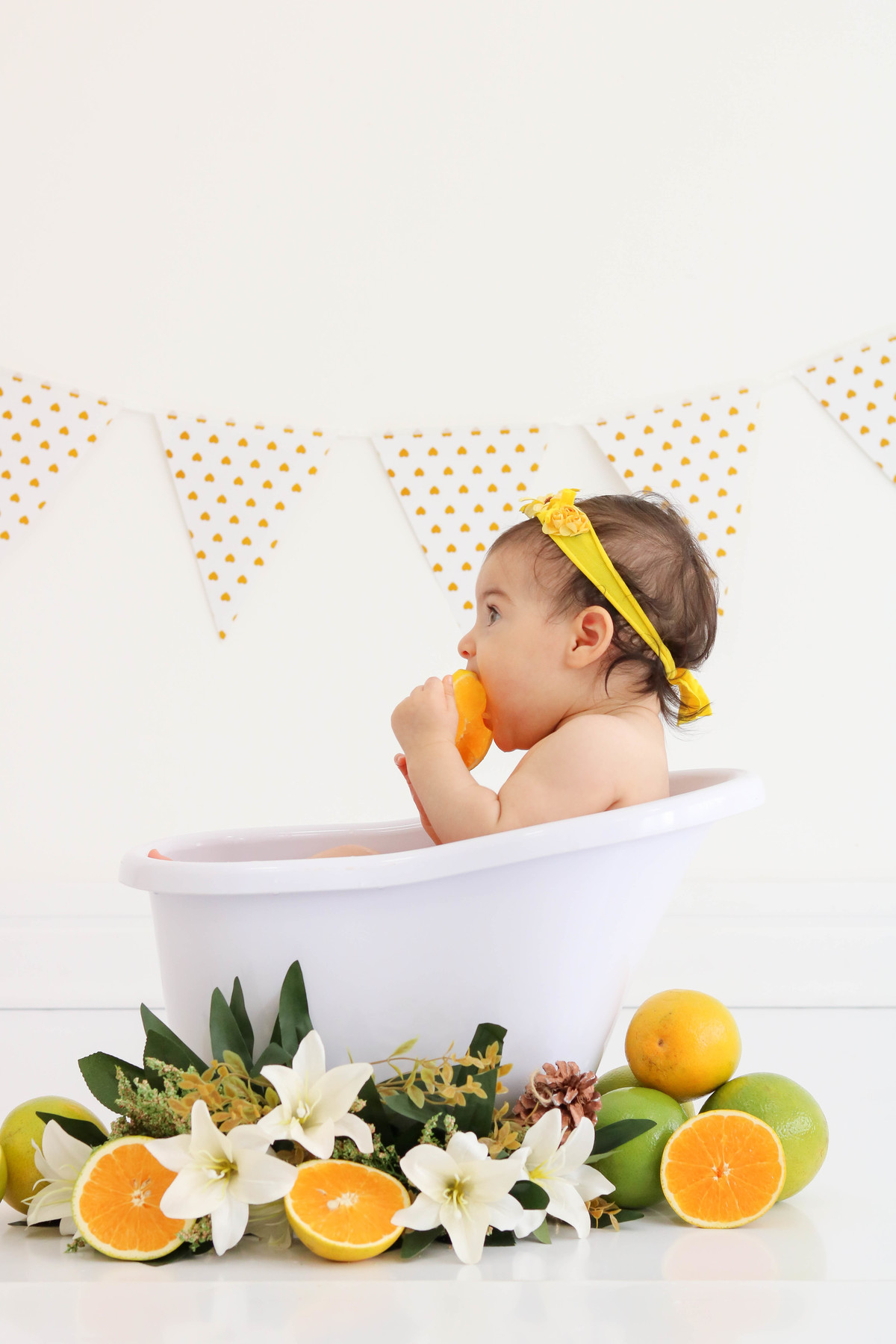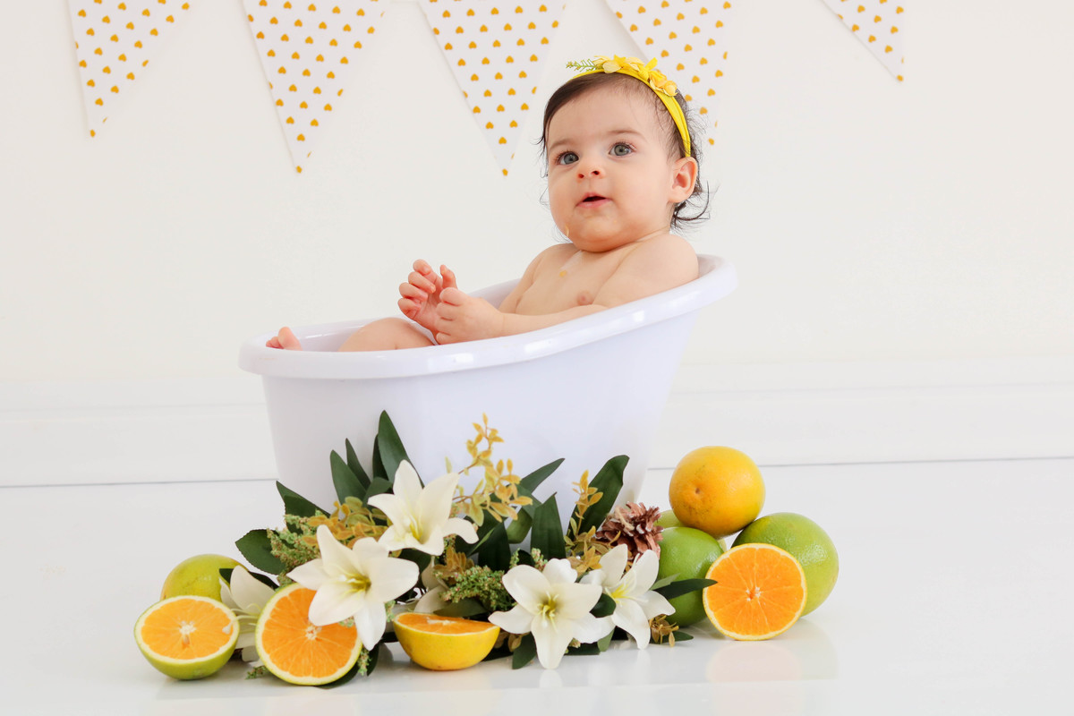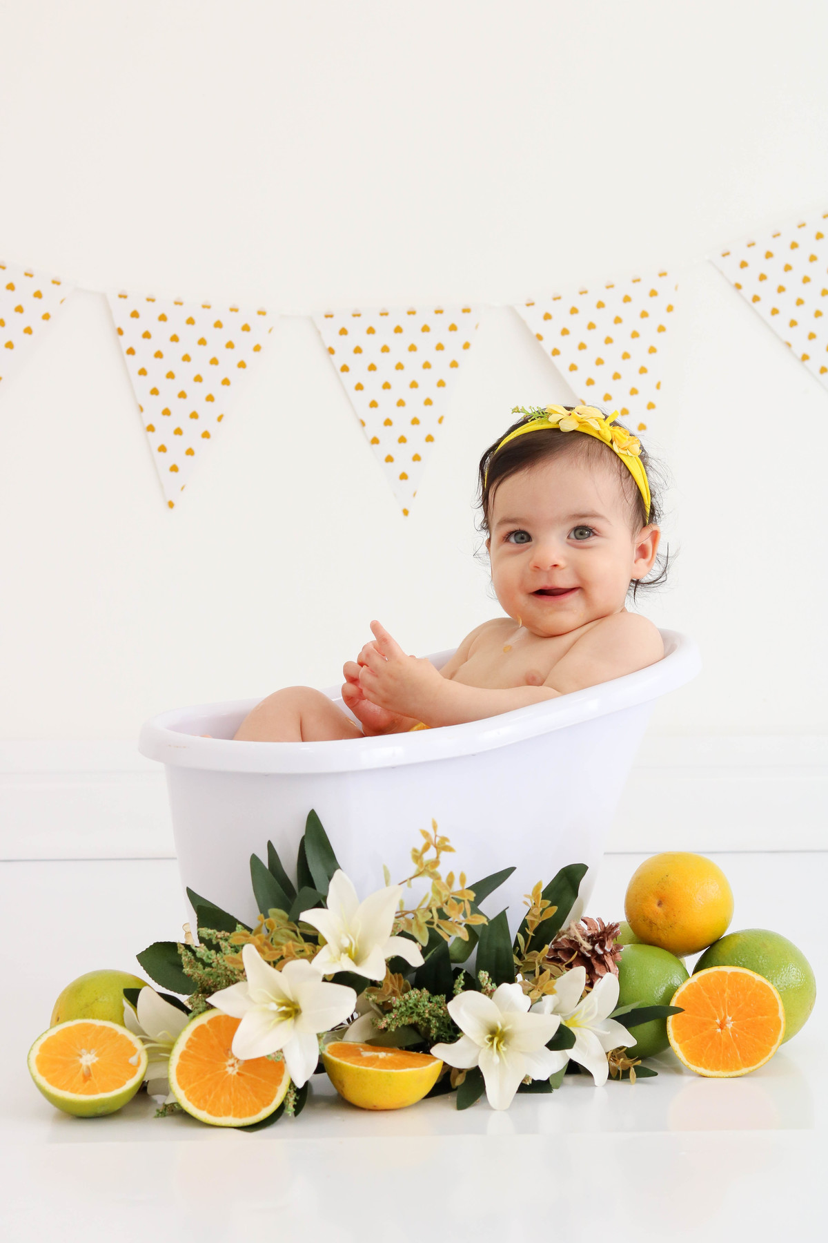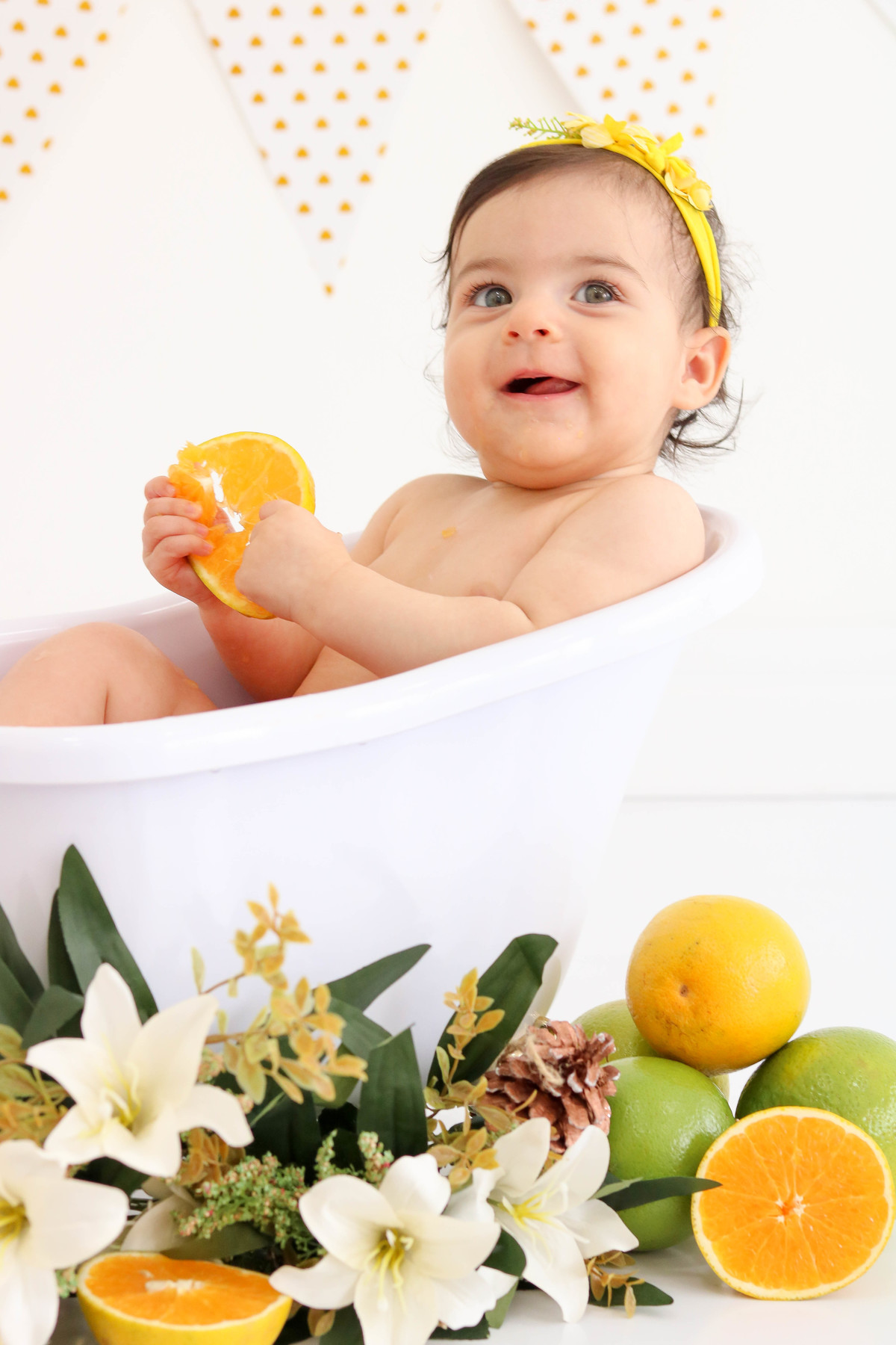 O 6 meses da Isis foi exatamente assim, com a frutinha preferida dela.