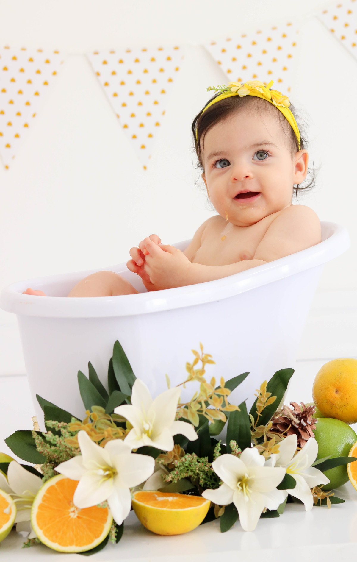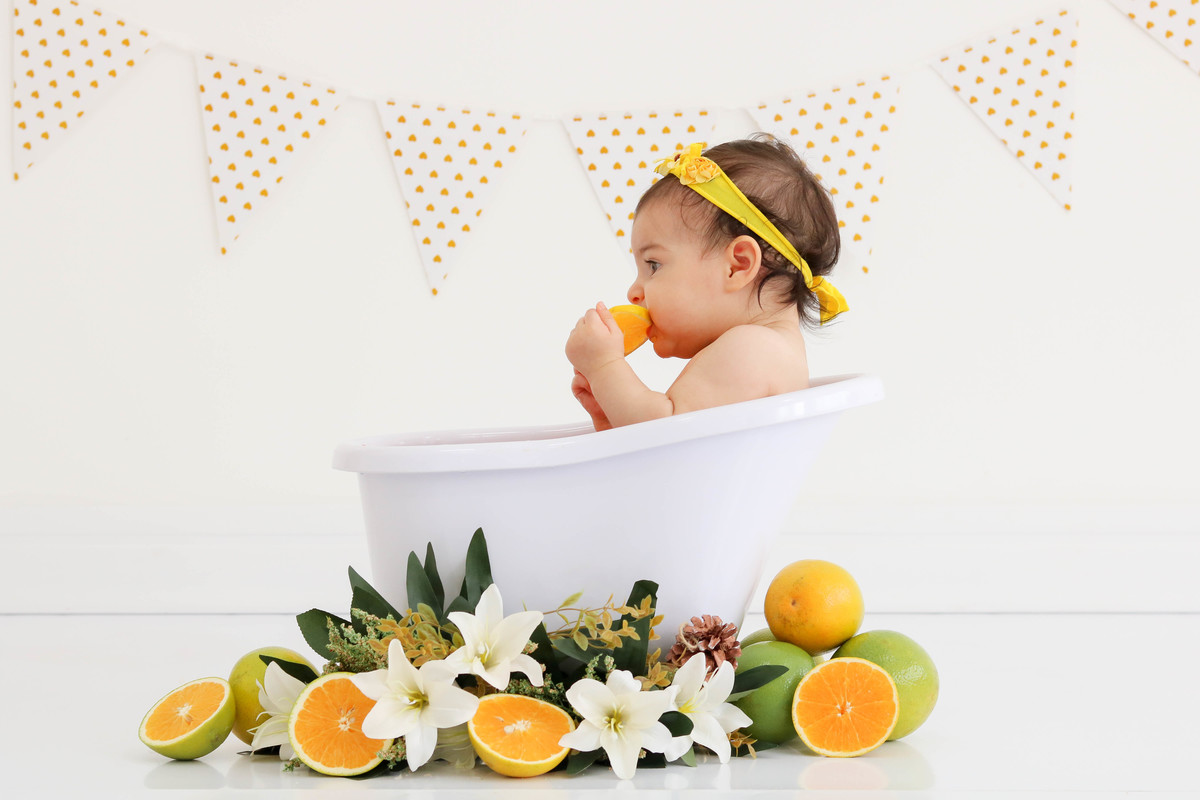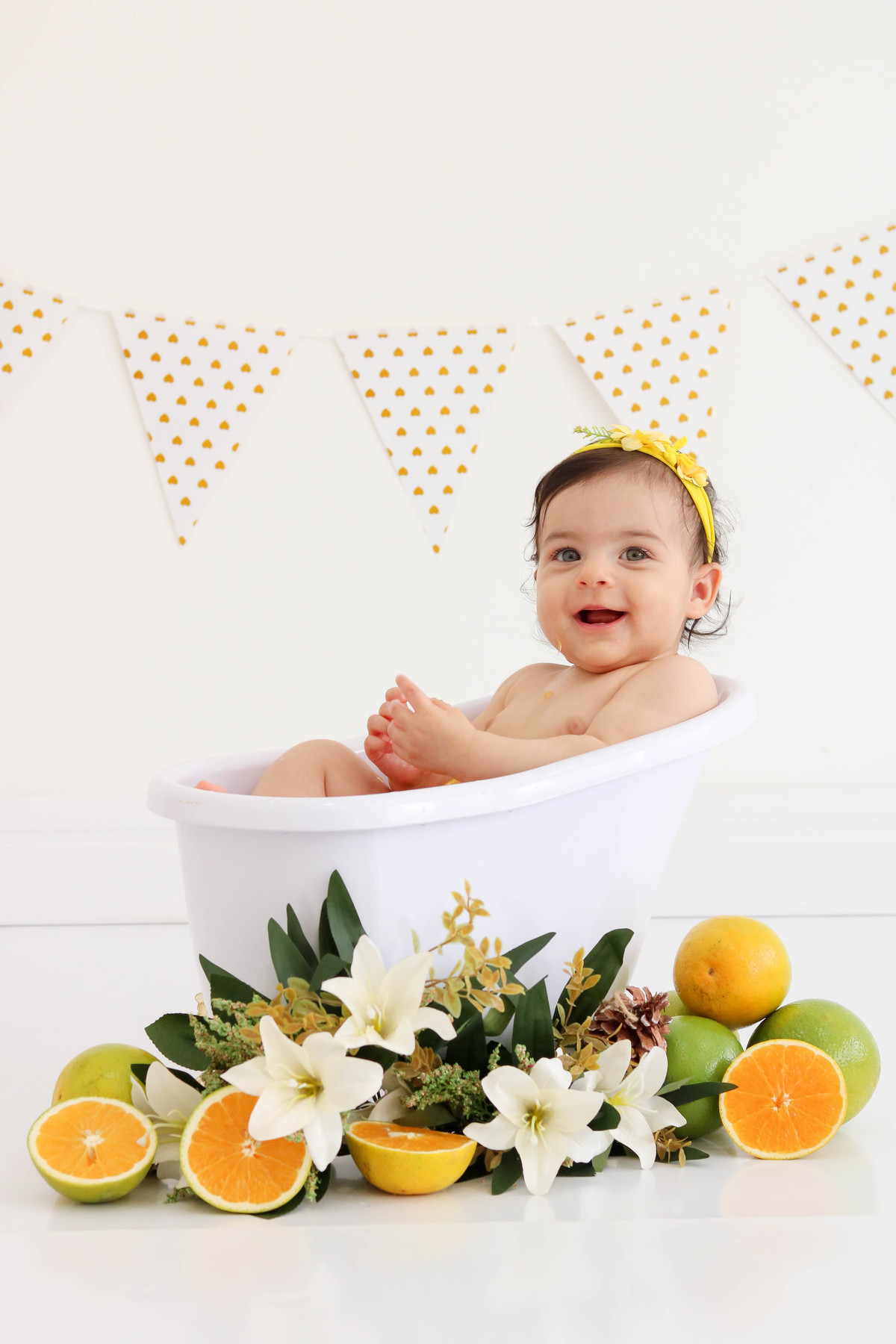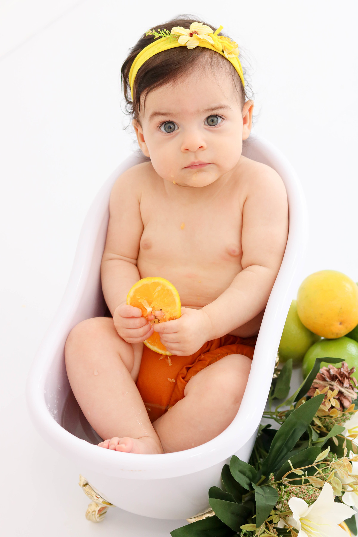 O 6 meses da Isis foi exatamente assim, com a frutinha preferida dela.